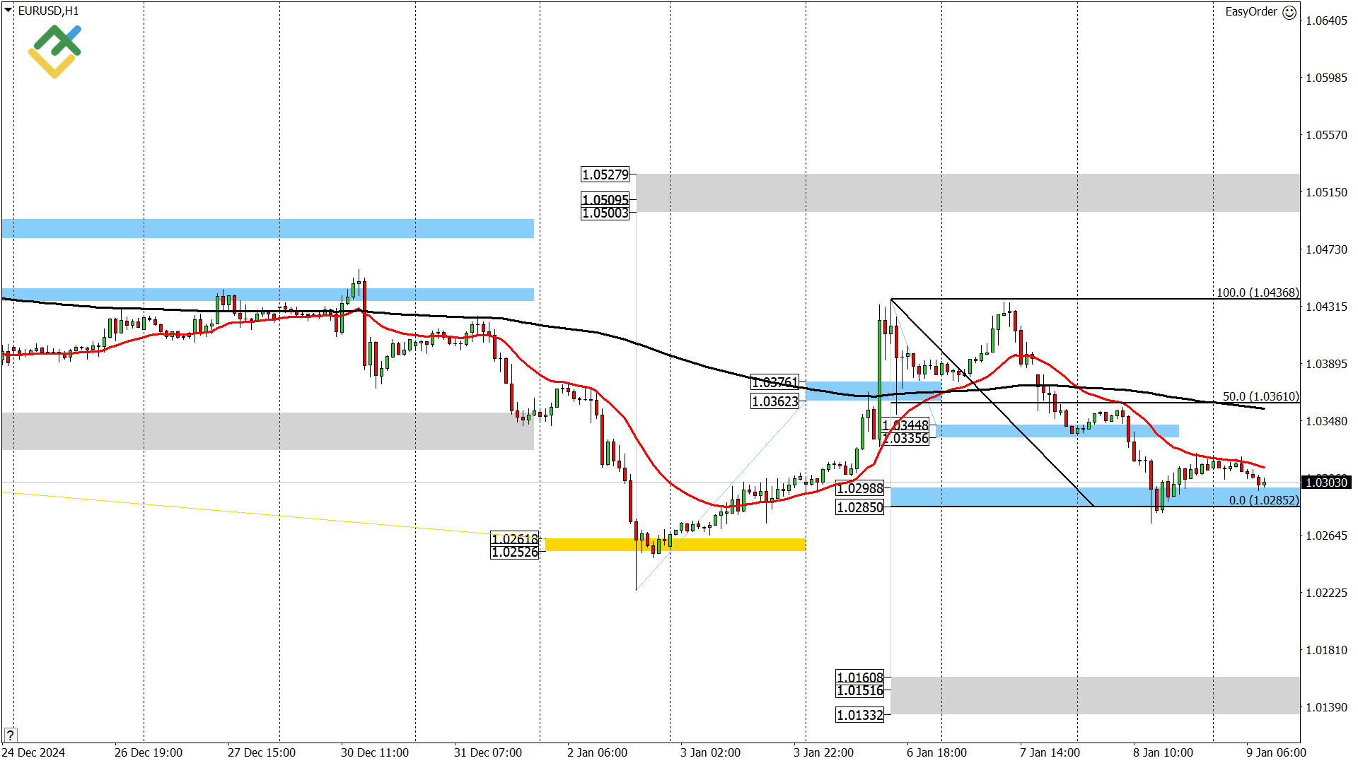 Buy at support (В) 1.0298 – 1.0285. TakeProfit: 1.0361, 1.0436. StopLoss: 1.0256.