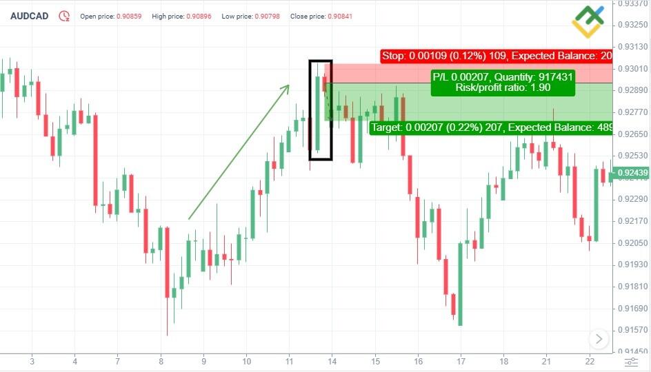 - Signal confirmation. Once the pattern emerges, it is essential to wait for the next phase, when a bearish candle appears, confirming the trend reversal.