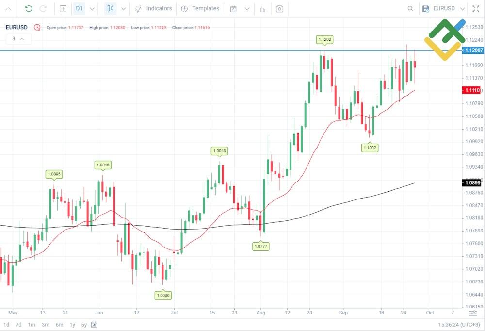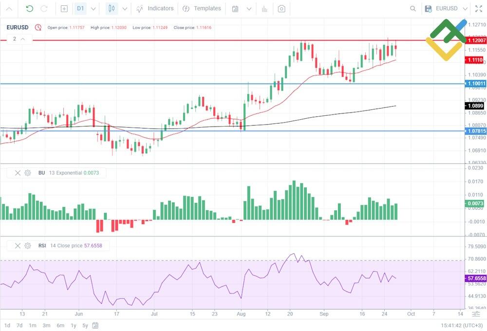 During the growth observed in September, the price exceeded the key high near 1.1202. Thus, the price highs and lows are increasing.
