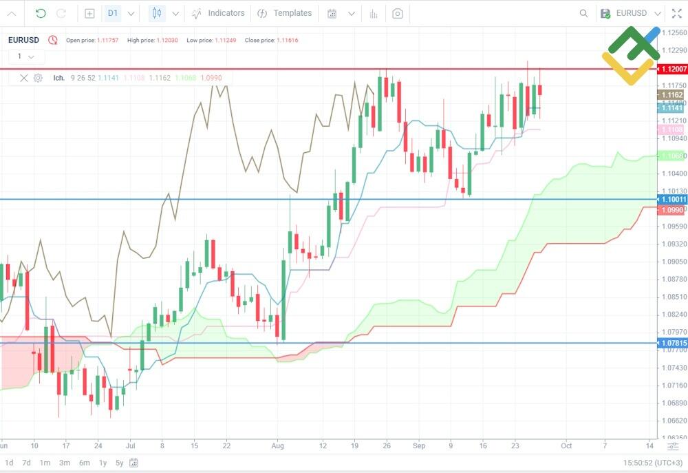 - In the medium term, one may consider long positions on the correction at the September low of 1.1000, as well as at the Ichimoku cloud, which is pointing to an uptrend.