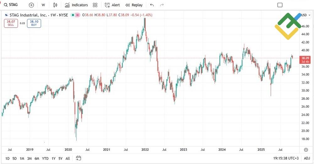 STAG Industrial is a REIT dedicated to acquiring, owning, and operating industrial properties in the US. The company’s property includes various industrial buildings such as warehouses, distribution centers, and manufacturing facilities that are leased out.