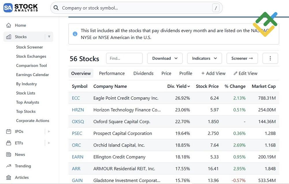 1. Each month, look for promising dividend stocks by running a targeted search online or asking an AI tool to generate a list of candidates or relevant sources. Many financial websites also offer screeners that let you filter stocks by specific criteria. The main drawback is that most of these tools focus on regional markets, primarily the US.