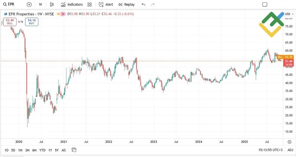 EPR Properties is a net-lease REIT specializing in experiential properties across the US and Canada, including movie theatres, amusement parks, ski resorts, gaming, and education facilities. The company owns a portfolio of over 350 locations leased under long-term agreements, in which tenants often bear the costs of maintenance, insurance, and taxes.