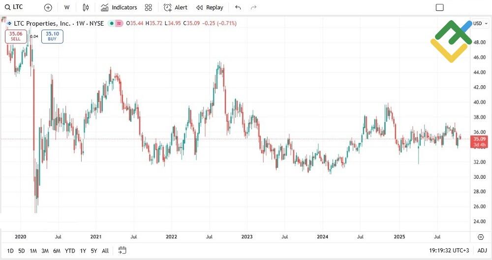 LTC Properties shares are highly volatile, with prices still recovering from the market downturn. The stock is unlikely to suit long-term investors (5+ years), but it may offer short- and medium-term opportunities. Dividends are modest yet above the industry average, and the payout amount has remained unchanged since 2016. Payments are stable.