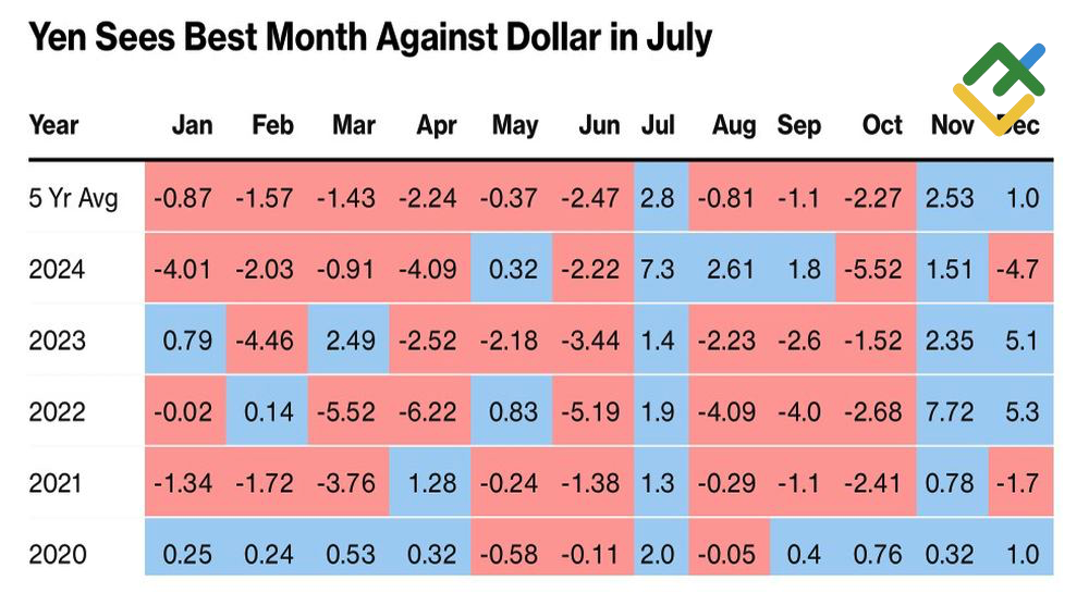 Historically, the yen’s seasonal strength in mid-summer has been attributed to several factors. These include position adjustments ahead of the August summer holidays, the conversion of foreign income by Japanese exporters to pay dividends, and the Bank of Japan’s monetary policy. The current weakness of the US dollar is favoring USDJPY bears. The USD index experienced its worst half-year performance since 1973.