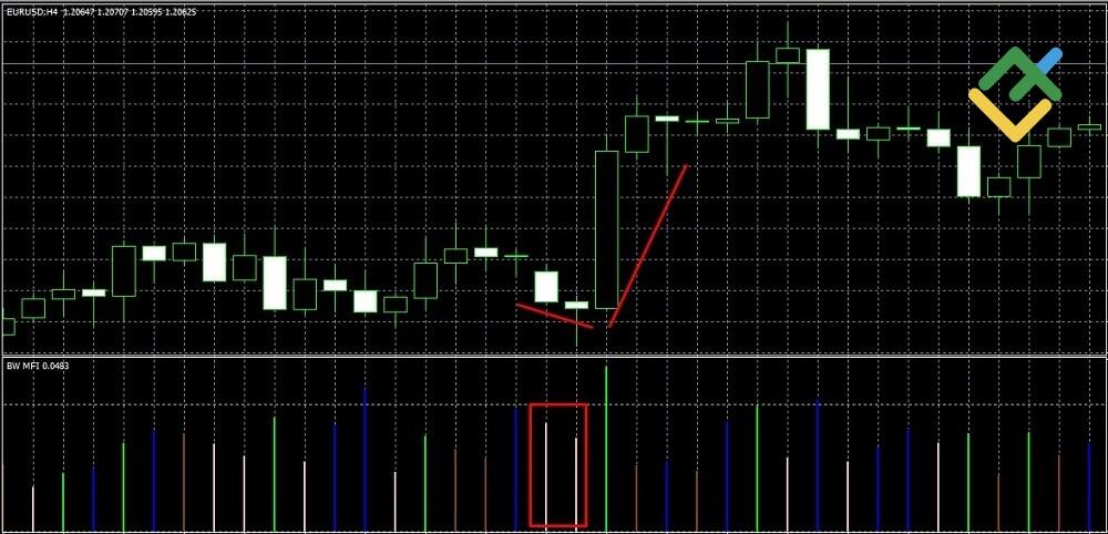 - Pay attention to the height of the bars: A tall bar on the signal candle strengthens the MFI signal.