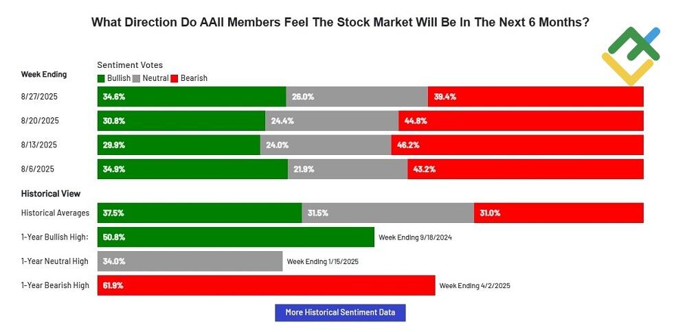 The extreme fear zone (0–30) is often one of potential buying opportunities. This range indicates an oversold market where most investors have already sold off their positions. The market sentiment tool has little room to fall further. However, the market moves in waves — after every decline comes recovery. That’s why long-term investors usually start buying stocks at the lowest prices in this zone.